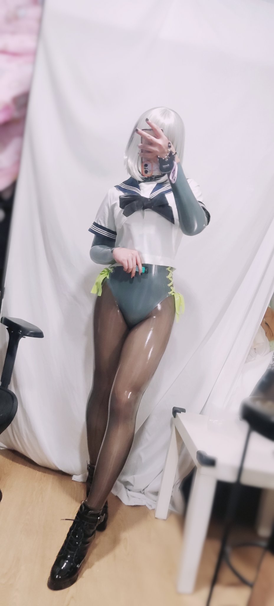 Great cosplay! Just for info, the character is Alice from 'Nikke, Goddess of Victory' and the suit by 'Kinkside' 😊