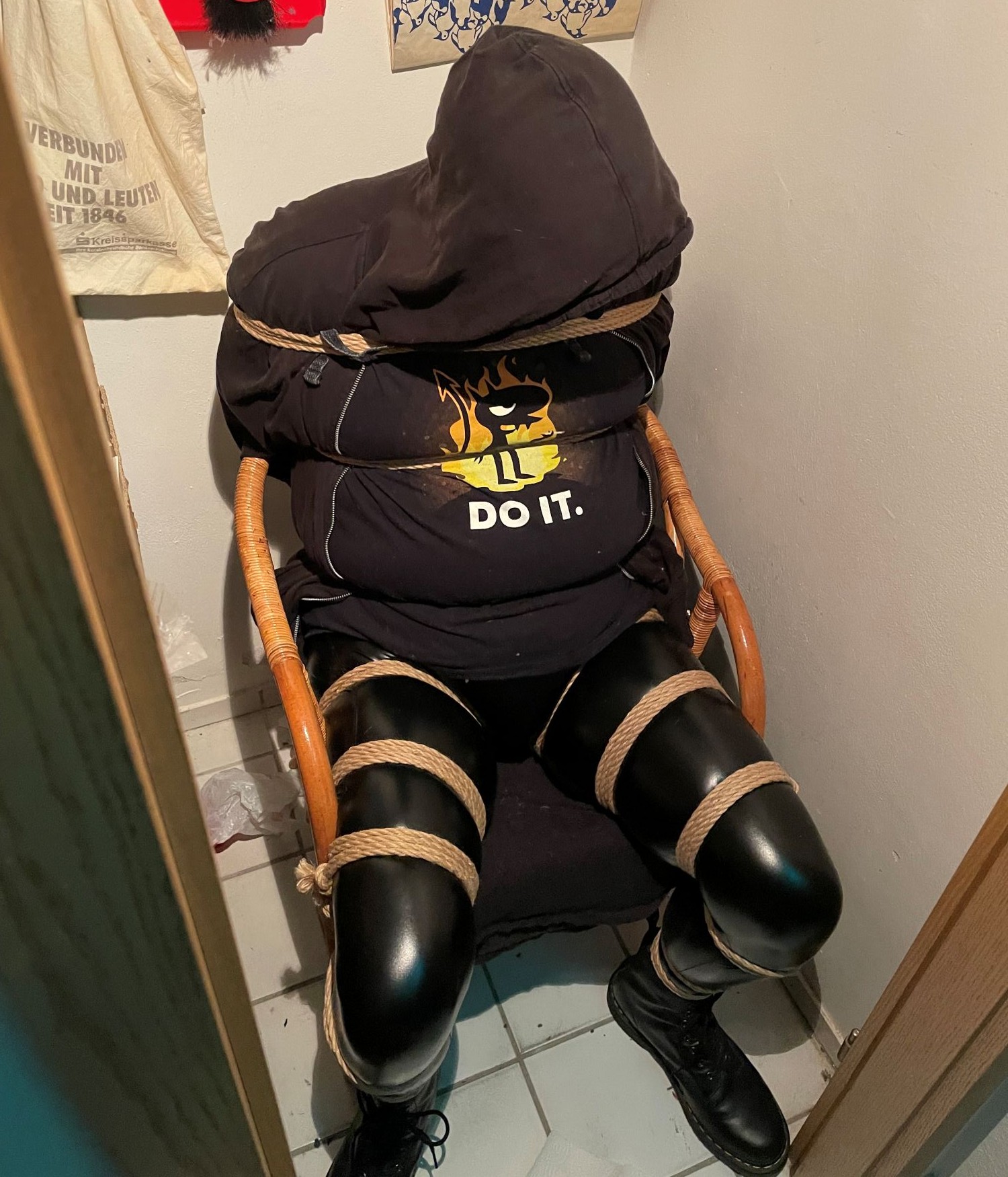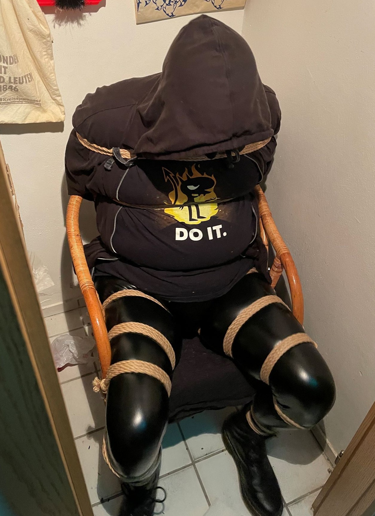 I had been fantasizing about being tied up in a box or crate for quite some time. However, I didn't act on it for a long time. Mostly because I didn't have a box that was big enough. That changed at some point, and after unpacking my office chair, I immediately tried lying down in the box, but then I ended up just storing it in the attic.