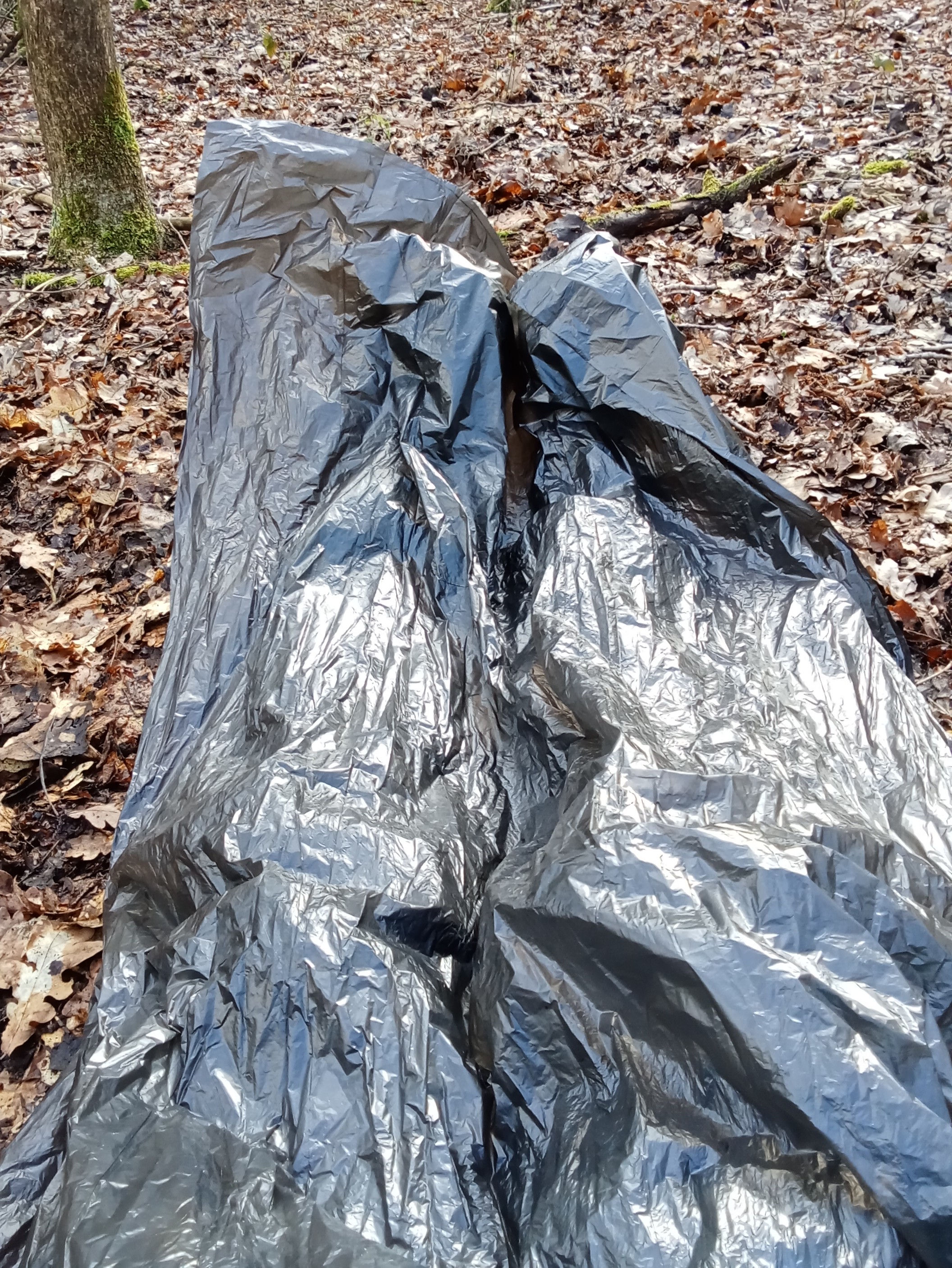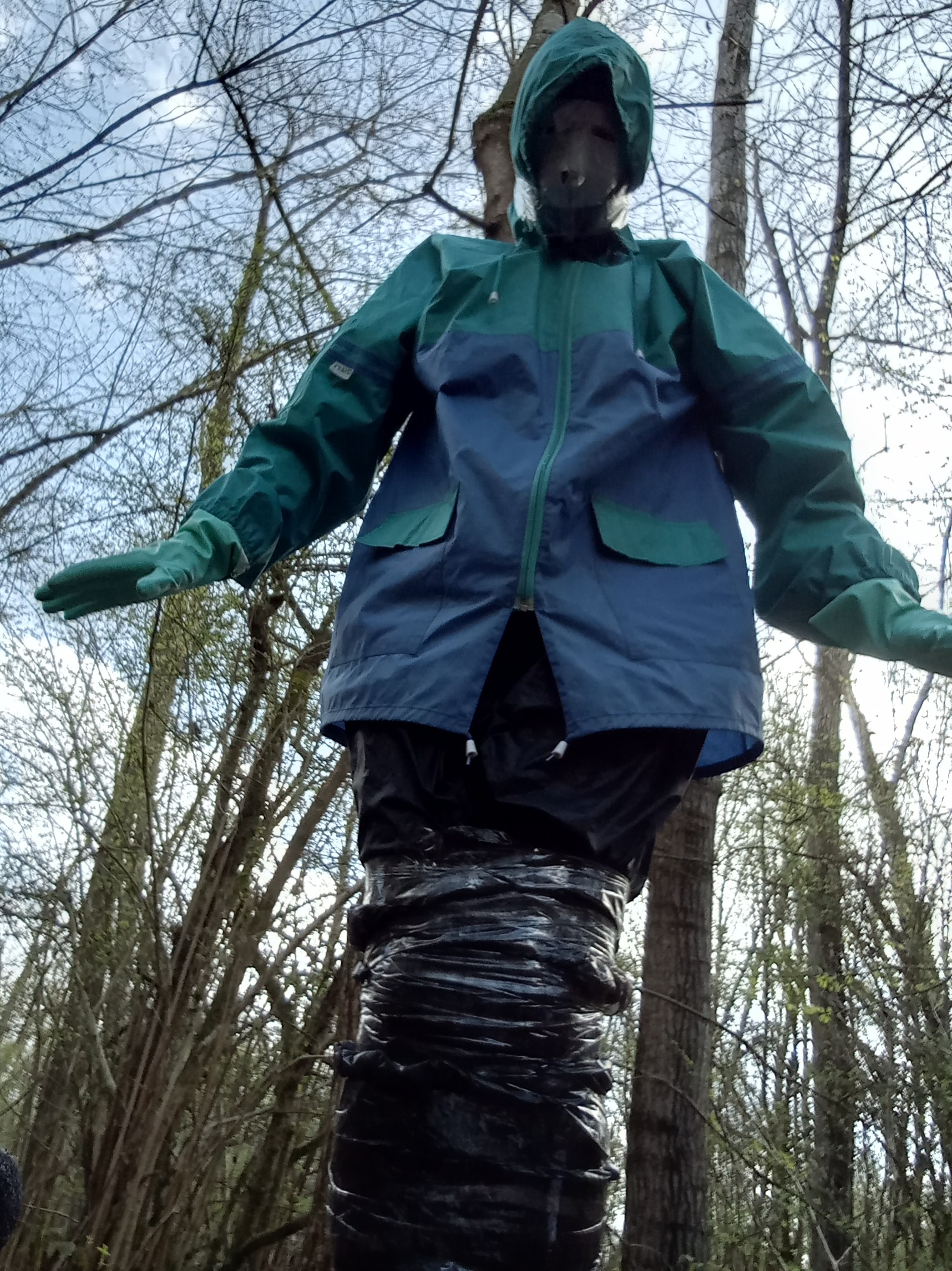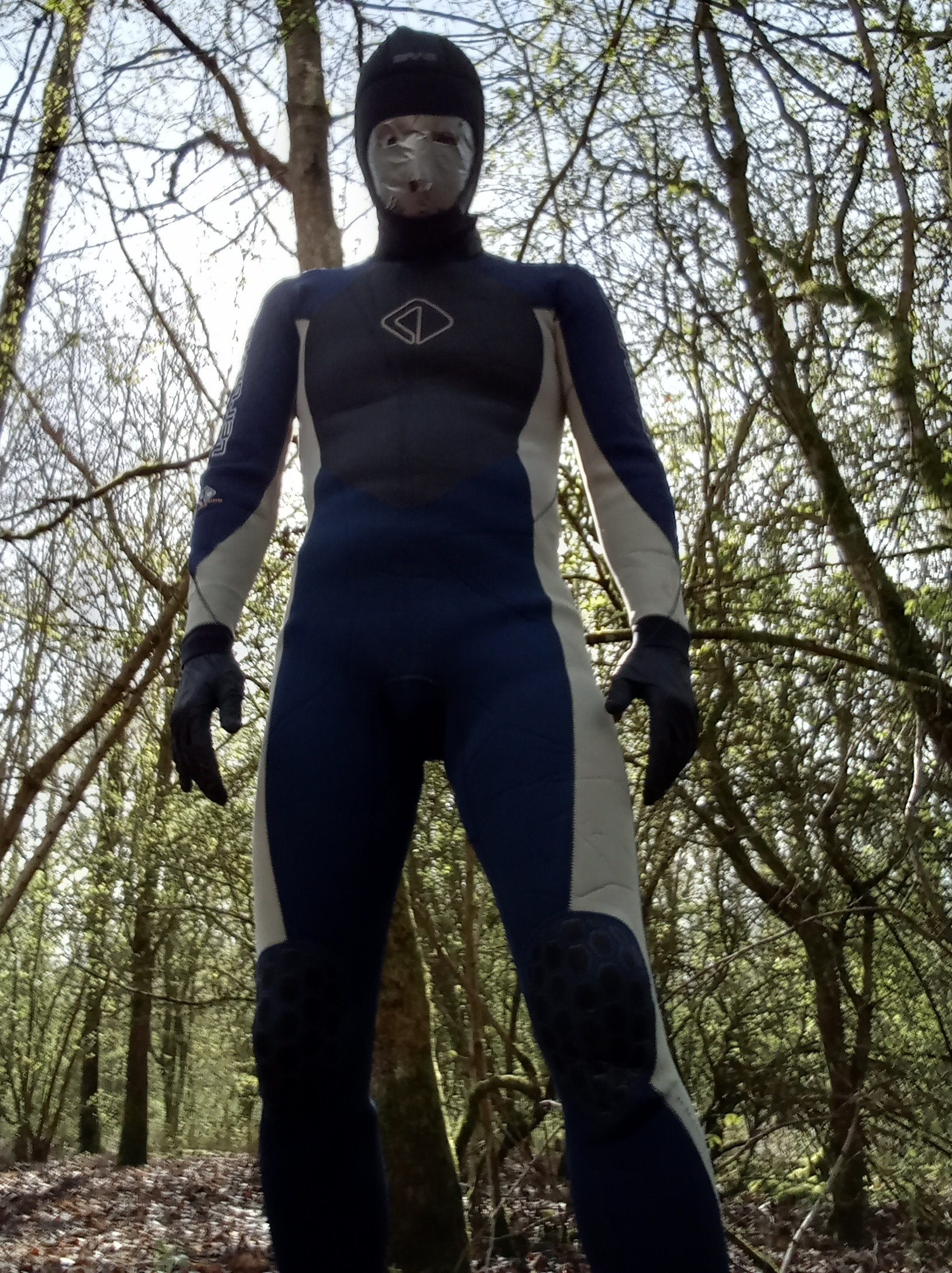 Now, for the bondage part of this outing! As I need a set of scissors to get out of this suit, I move mine to a tree rougly 150 meters away: