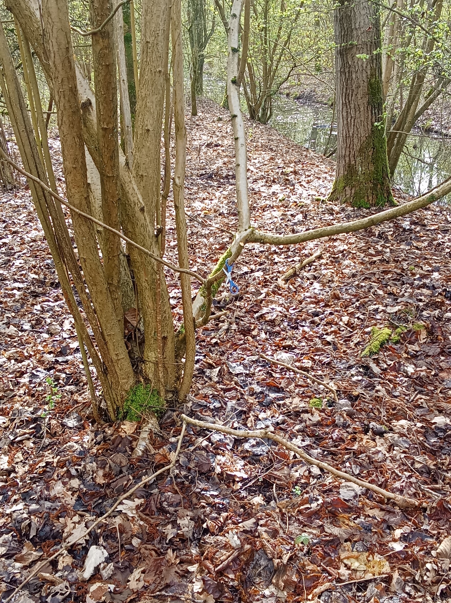 Then, I gather my stuff and move to my secluded spot in the woods. As posted before, I know of a few hard-to-reach spots in the woods which I use for my selfbondage areas. This time I went to a woodland area of roughly 100x200 meters completely surrounded by water. During a storm two years ago, a tree fell over the water, so with a bit of balance you can actually reach the area. Nobody else does. This area is overgrown, so there's zero chance of being found unless someone follows from the beaten paths and over the tree across the water.