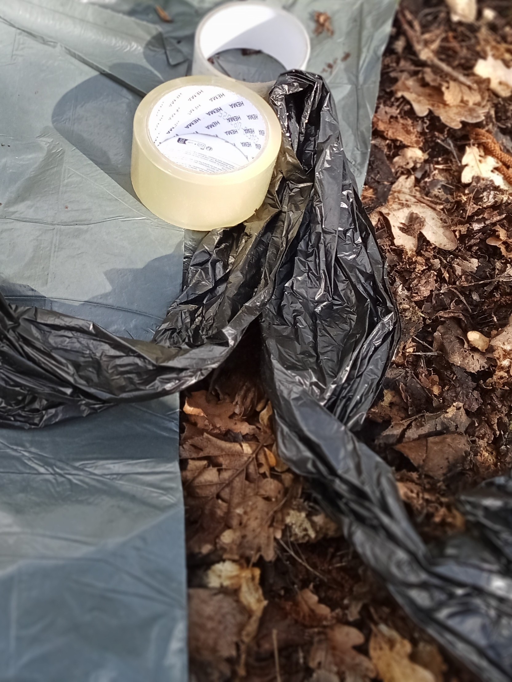 Back at my starting point, I lay out my final pieces of gear. A large trash bag and tape, lots of tape. Finally, a 2nd set of gloves to cover the first ones.