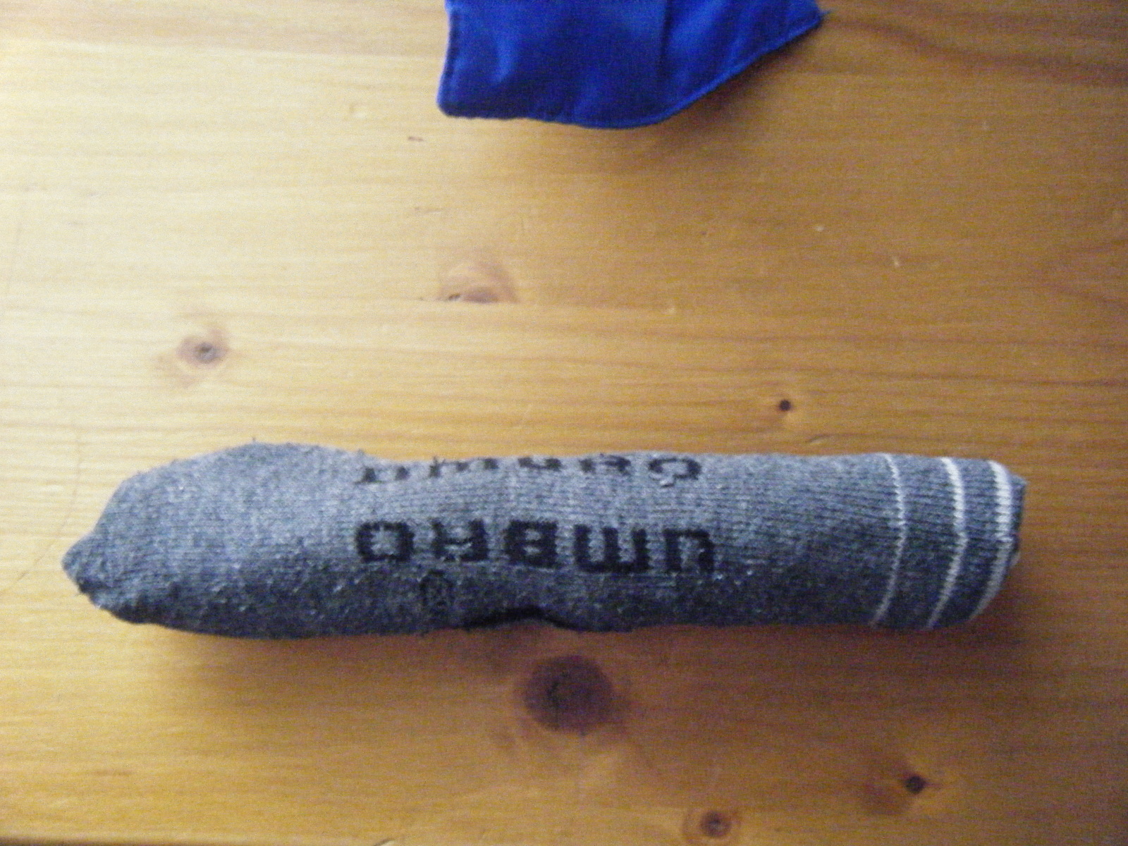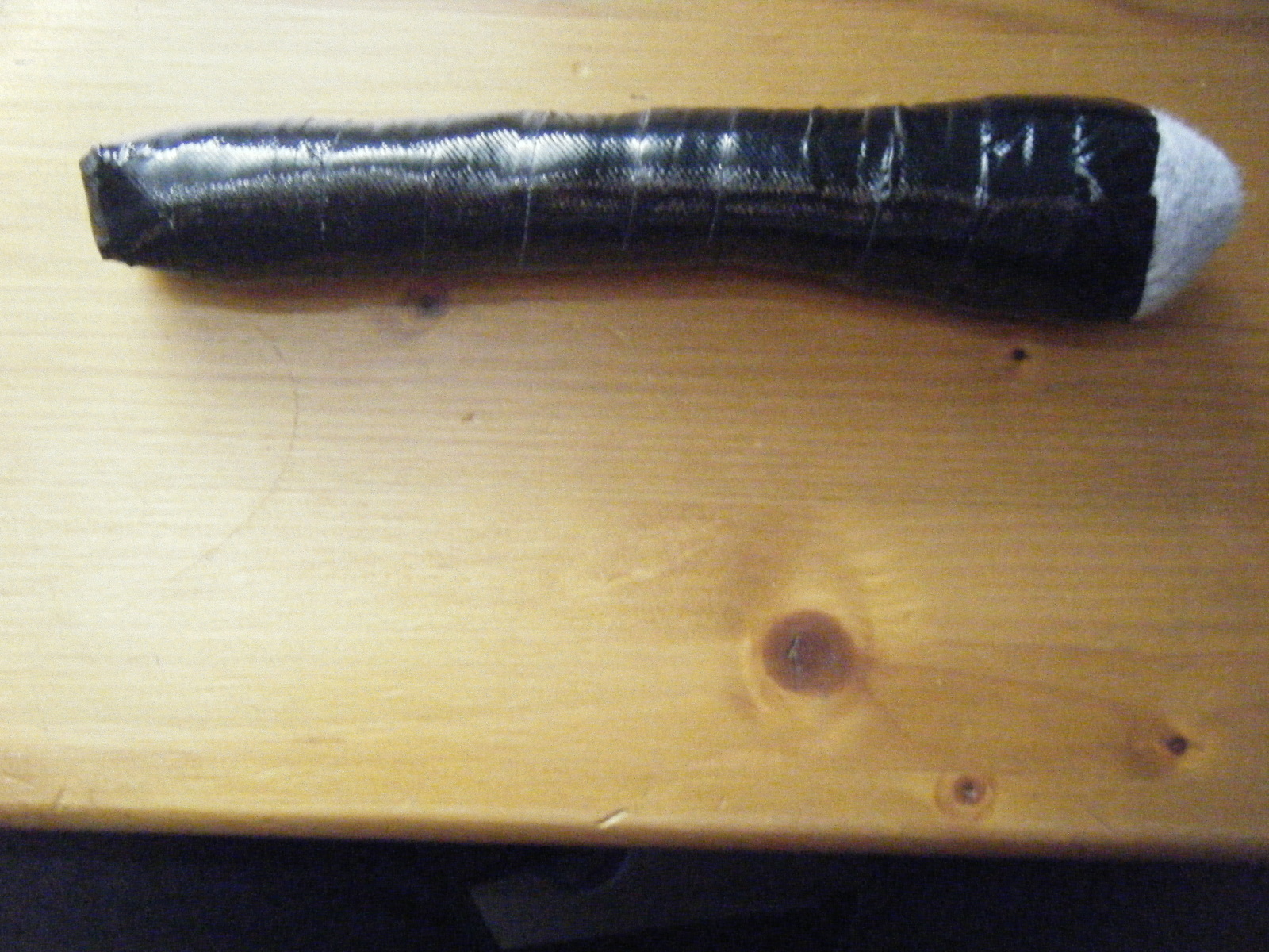 3. Go and get some tape, I used extra strong hobby tape for this one, but for other ones I used a kind of latex tape. Now firmly tape the tape around the sock, so that it start to look like a nice dildo 😉 (You should be aware of the fact that the thickness decreases when u firmly tape the tape around the sock.) And this is what u get when finished! (I didn't taped the end, because it just can't get in 19cm 😟 )
