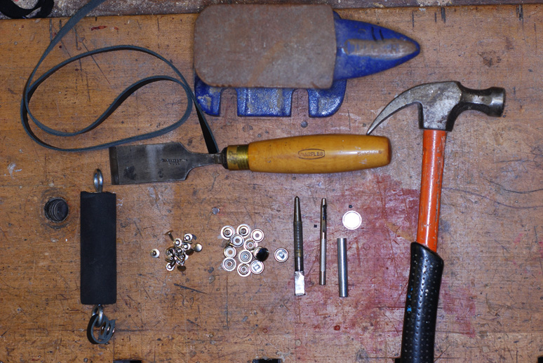 1. You need a few tools, but nothing really special... hammer, chisel or sharp knife, tapered drift or punch, 2mm diameter hole punch, rivet punch (and accompanying small dished anvil), large anvil or similar.