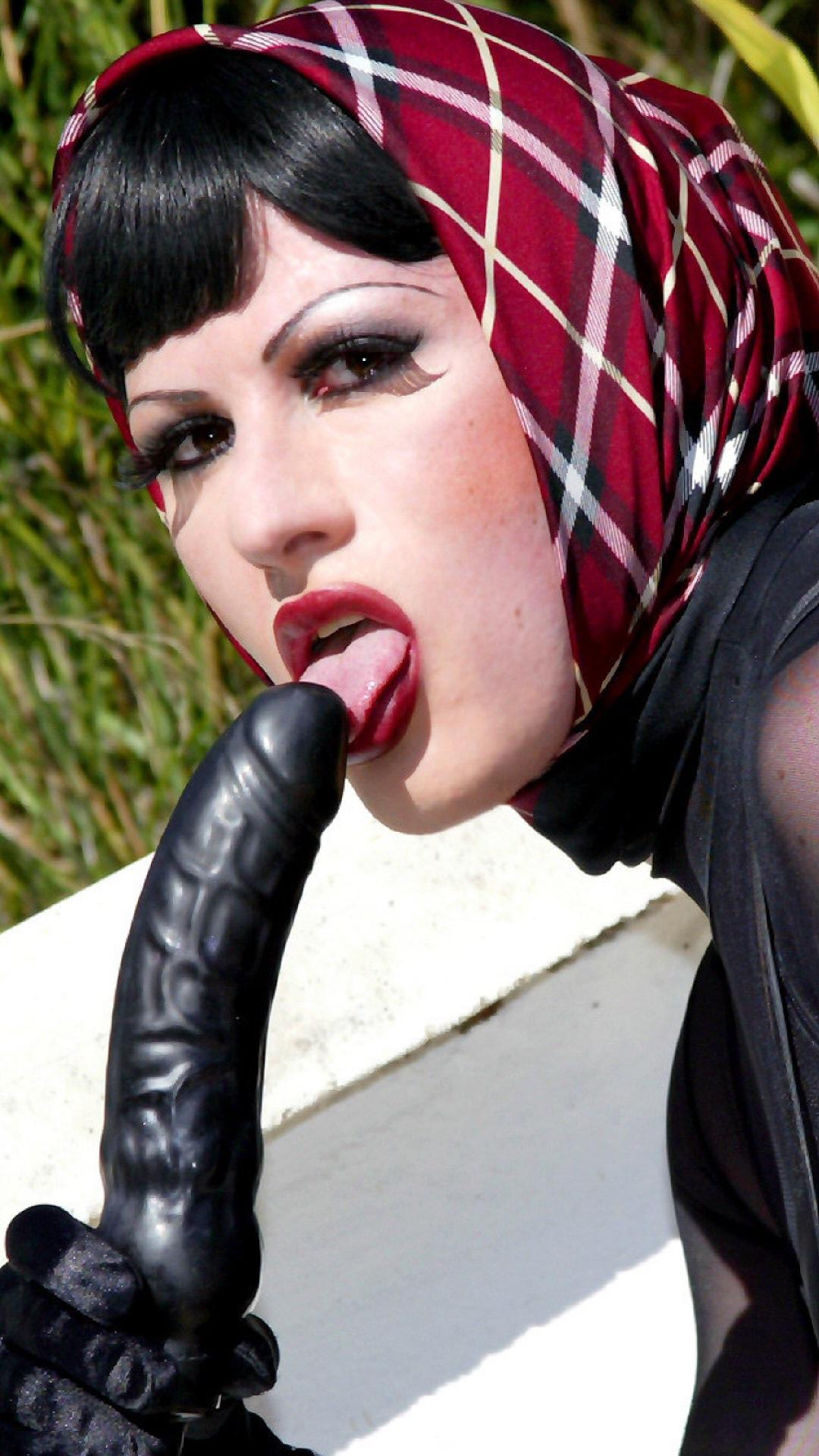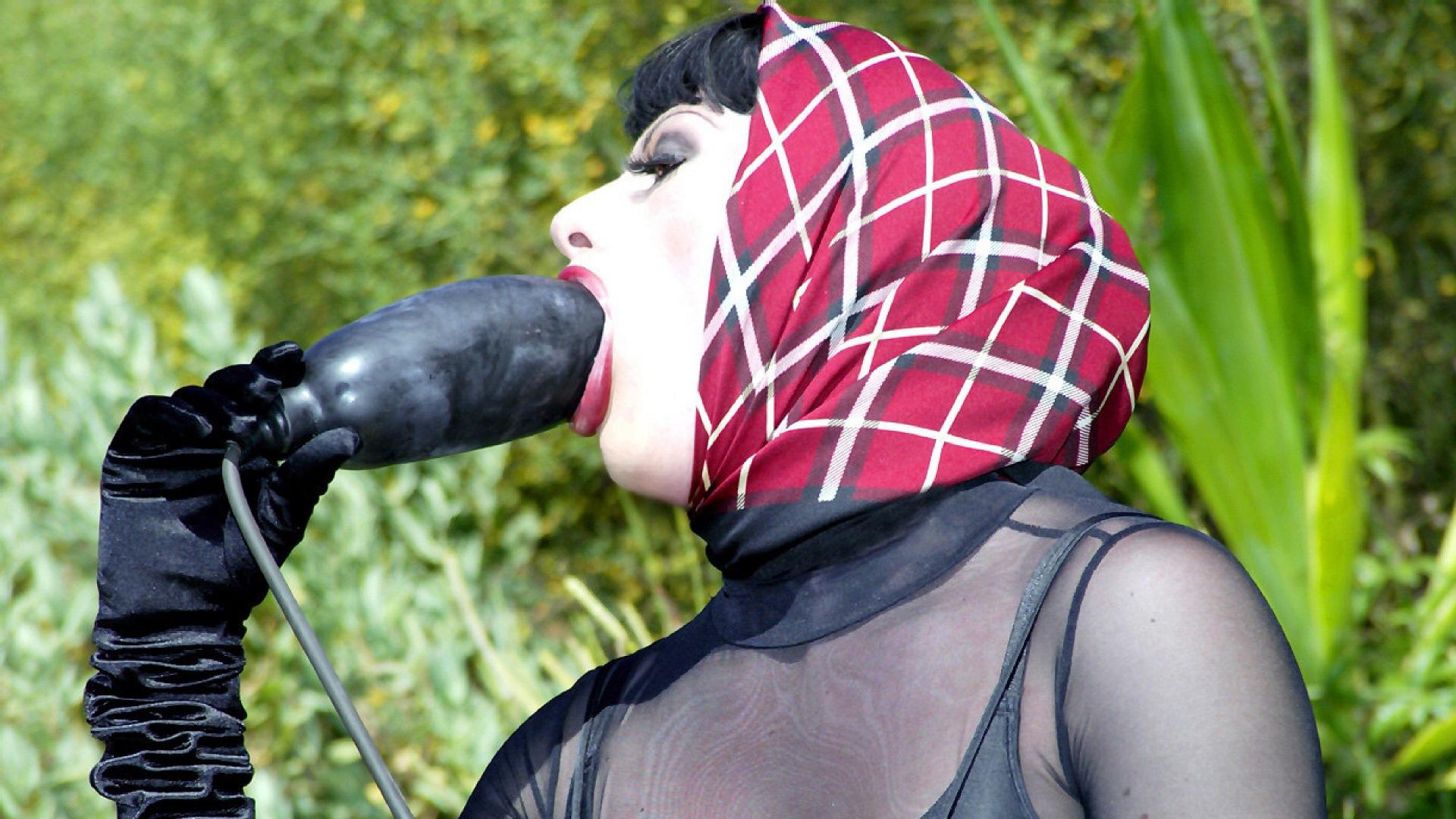 Deepthroating an inflatable dildo.