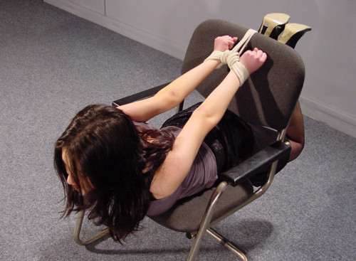 Incidentally, I love chair self-bondage but am looking for some new ideas - If anyone has pictures/drawings of interesting chair bondage (i.e. not the usual 'legs to legs' kind of thing) please post here.