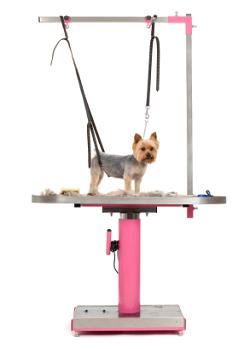 They put the dog on a table, standing on its legs but almost suspended in air by one or two leashes, so if it tries to run away, it will just fly a bit and return to its spot. Looks something like this: