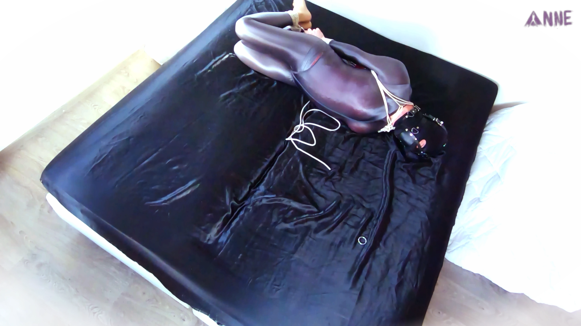 I wanted to do yet another hogtie, after saying I needed to explore other things in my previous thread Dodgy . So I got out the shiny bed sheet and got in shiny leggings and matching leotard that are an absolute joy to slide around with on that bedding.