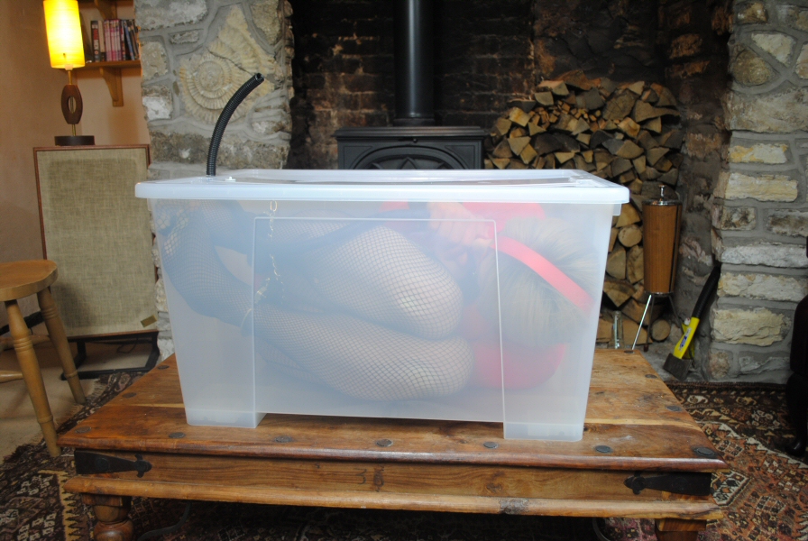 Dressed in lycra, cuffed and sealed in a water-filled plastic box., oh my!