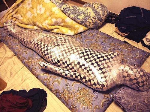 Source: https://www.youtube.com/watch?v=9E2n_Xak6TM ... and the breath-control part is scary ... (19 Aug 2013, 14:20 )Like Ra Wrote: Not a mummi/cocoon, but looks very exciting. I'm not sure whose place I would take. Both? 😋 That is incredibly sexy! Hmmm, would I want to be inside or outside? I think this is an 'ultimate fantasy' scene - I imagine that if I was inside then whoever came along (male or female) could do whatever they wanted to me and I wouldn't know what sex they where... sounds like fun. If I was on the outside and no-one was looking, then I might be tempted to play a little as well ![]() MJ