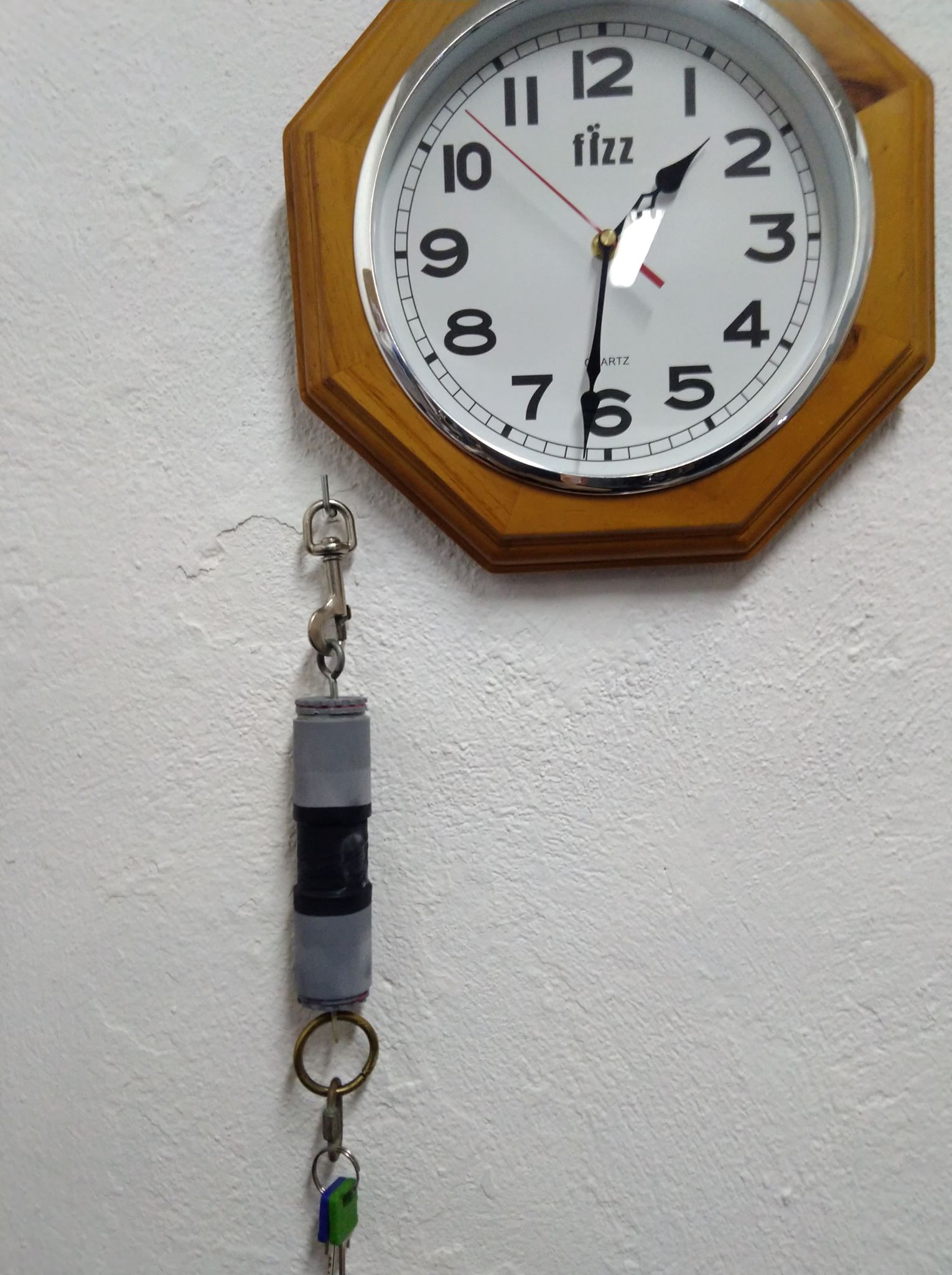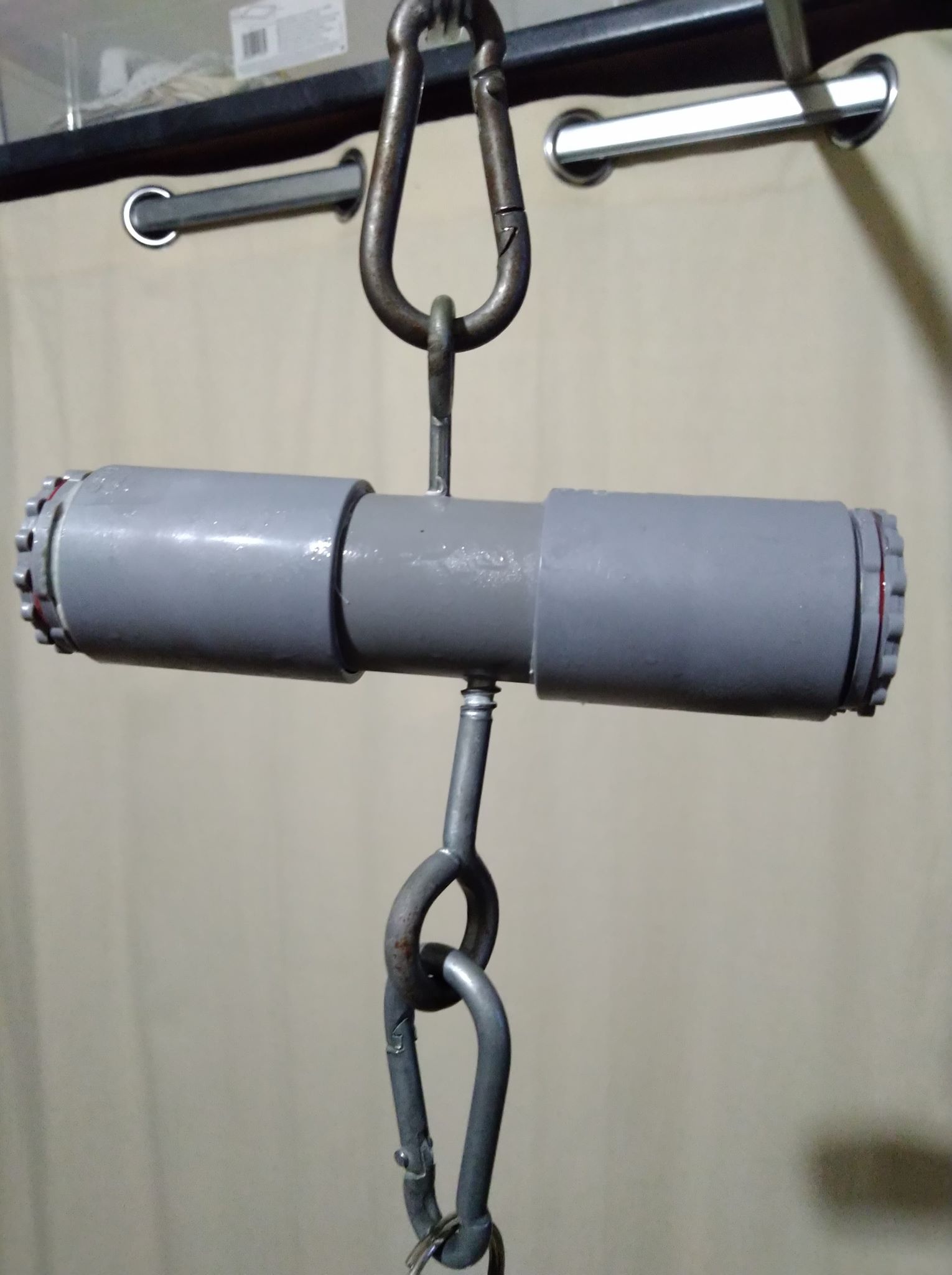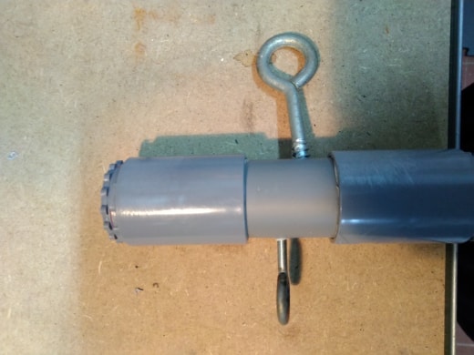 I think that the holes should be in the end caps. Not in the pipe.also I notice that the eye screws threads could hang up together so when the ice does melt, the keys will still be in the air and out of reach.
