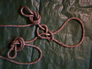 On the picture, the knot i talk about is the right most. The two left ones are only there to form loops in the end of the rope.