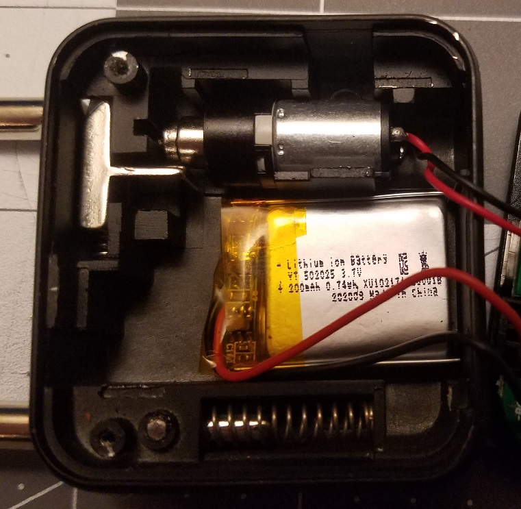 Other interesting things I noticed on the circuit board is a piezo element for beeps and a switch which I assume gets activated if the motor spins to open the shackle.  I honestly have no idea if it matters as I was able to get the lock to function just fine with the circuit board dangling out by it's wires.  The piezo element was interesting to me because my lock had not made any sounds whatsoever since I'd taken it out of the package.  I remembered how my old lock could enable or disable beeping sound so I tried that on this one.  Sure enough, if you hold in the middle button for a few seconds while the screen is on, it will enable and disable the beeping.