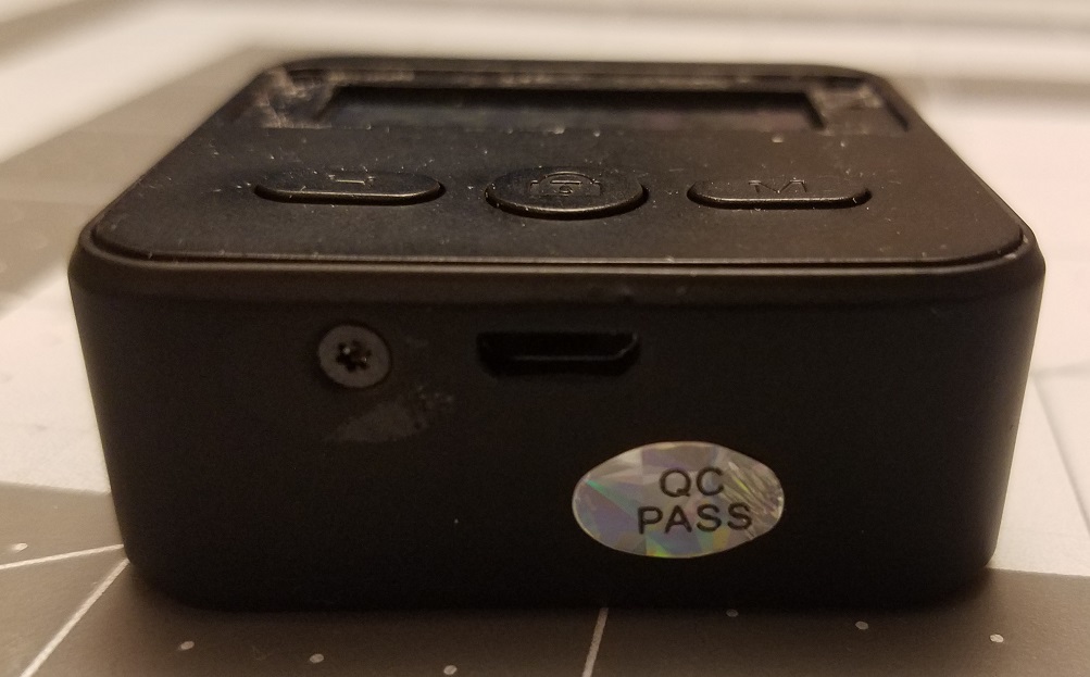 Much like the previous locks, this lock is fastened by hidden screws as there are none exposed.  The difference is that there is one additional screw on the bottom underneath the "inspection" sticker in addition to the two normal ones under the adhesive display window.  After popping the window off, I looked for the expected 'lock reset pad' like the other locks had but there's only a small hole.  I couldn't see it from this point but soon found out that there is a 'reset pad' underneath a sewing needle sized hole on the right side of the display.  That makes resetting this thing much more complicated as you would need to have a needle pre-bent with a 90° in it to be able to make contact on both poles of the contact pad.  I was able to test the reset pad after I disassembled it more and it does work although it gave me some concern that I'd bricked the lock.  I reset it and it went completely dead until I finally plugged it in to charge, then it came back to life.