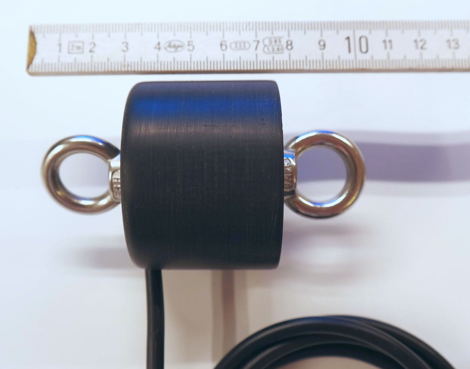 A cable makes only sense if the magnet is mounted stationary. Even then it's not trivial to get it completely out of reach.