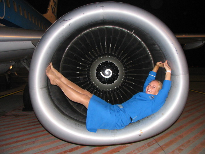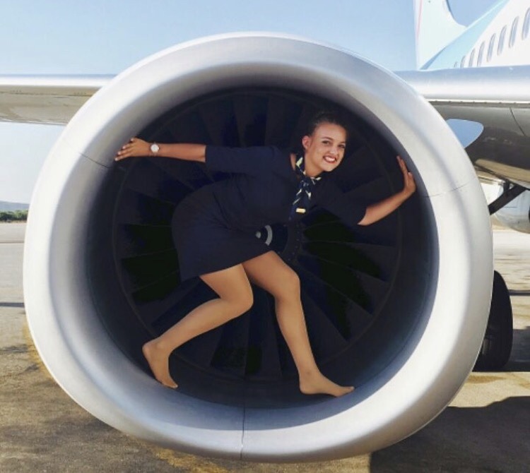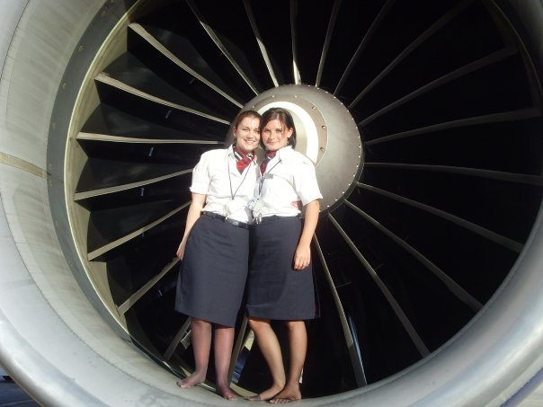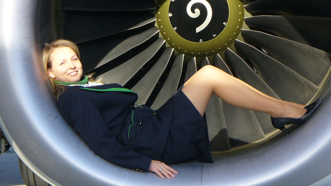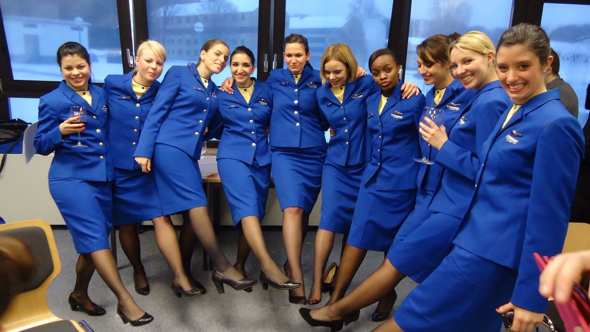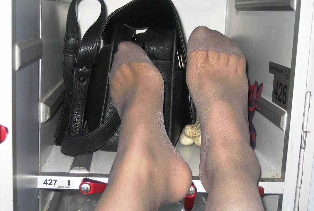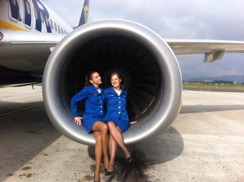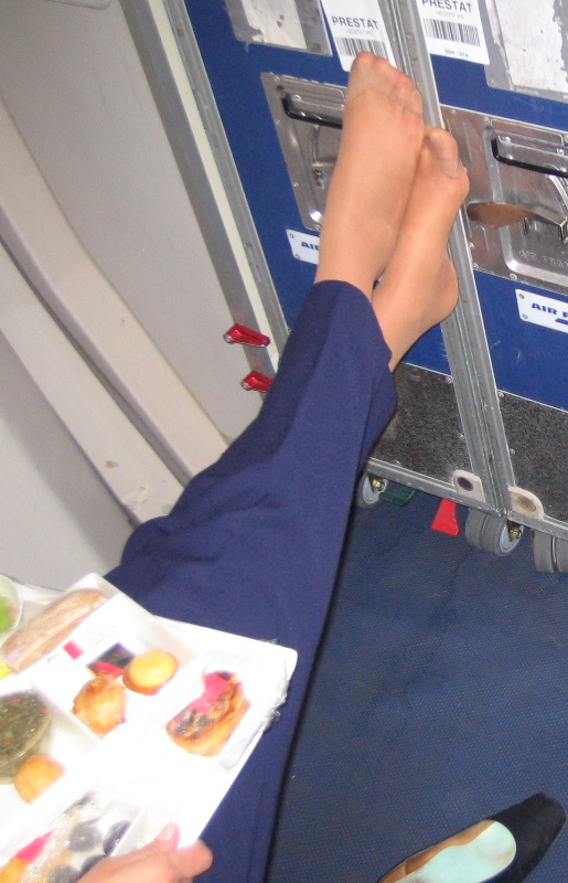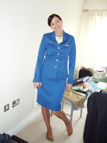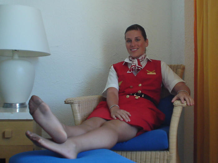 Flight attendants in pantyhose
