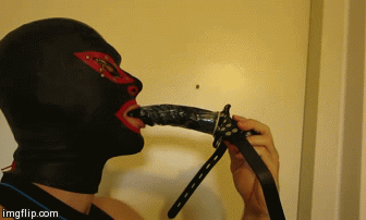 I think about buying and trying this one in Size M: http://www.blackstyle.de/cgi-bin/shop/ls...t_zeilen=0 (05 Mar 2014, 00:38 )Vacbedbound Wrote: Is the Dildo you use flexible or rigid?Flexible. The more flexible the better, but avoid inflatable dildos. They trigger gagging reflex much easier than solid ones. (05 Mar 2014, 00:38 )Vacbedbound Wrote: I think about buying and trying this one in Size M:I have both size M and L. The inner tube make these dildos very rigid, what easily irritates the tender skin and put additional pressure on the throat. Basically, you will be forced to hold your head upwards to keep the dildo aligned with the throat. Non-tubed (usual, not enema plugs) are more flexible and more comfortable. If you can, I would advise to buy both versions. 12x3cm size is ideal. 14x4cm is a bit too thick, though I use it as a gag too. (24 Mar 2014, 23:25 )madjack Wrote: I think this gif belongs herePossibly here: http://www.likera.com/forum/mybb/showthread.php?tid=886 (dildo kiss) (25 Mar 2014, 01:26 )Like Ra Wrote:(24 Mar 2014, 23:25 )madjack Wrote: I think this gif belongs herePossibly here: http://www.likera.com/forum/mybb/showthread.php?tid=886 (dildo kiss) Doh! Cross posted to the dildo kiss thread MJ
