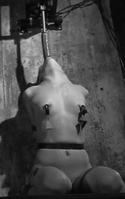 I'd set it so that you had to move closer to the wall to reach the keys to release your cuffed wrists. But, moving forwards caused the rope around the collar to automatically tighten (a simple one-way ratchet and weight would work) - meaning each step forwards would involve more dildo in your mouth, with no way of retreating. The key would be encased in ice, so your choice would be to wait and guess if the ice was melted (blindfolded you couldn't see it) or else risk a long time with that dildo deep down your throat. Some practical problems still to solve - such as how to prevent simply bypassing the dildo interesting? MJ (28 Sep 2015, 15:01 )madjack Wrote: I love this image anyway, but... Very interesting. Moving teh head left/right/up/down and possibility to just push dildo out during that movement out, somehow should be prevented.