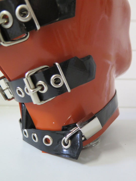 The thickness of the latex, the locking straps, the gag/mouth-hole and the nostril holes all contribute to making the thought of wearing this a definite EOTD Enjoy... I would! MJ
