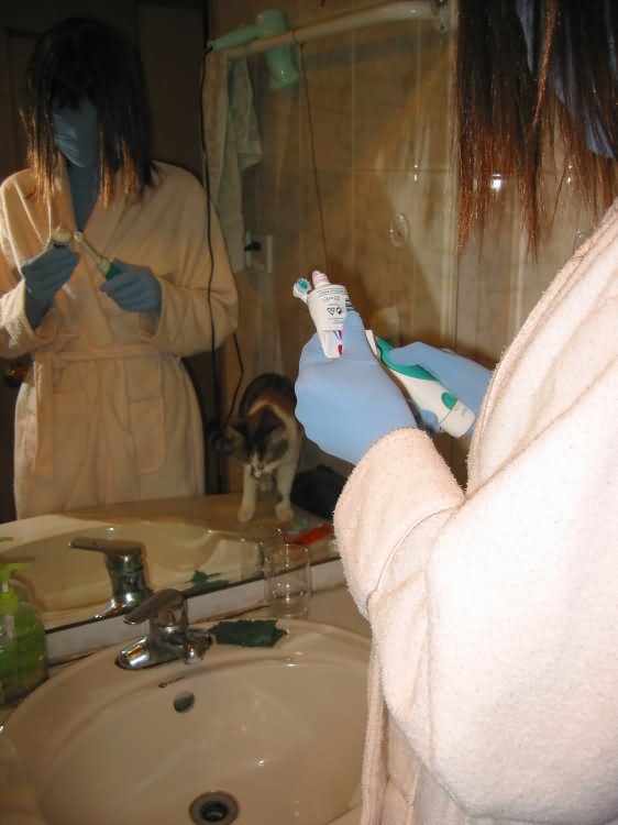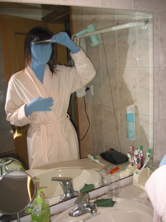 (28 Nov 2013, 04:57 )Bobyao Wrote: Did she sleep in zentai last night? She may forget that she wears zentai.