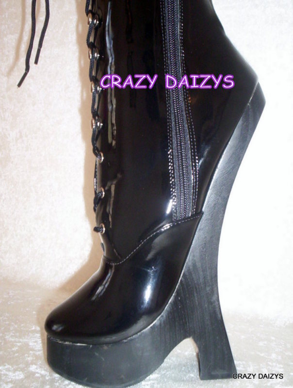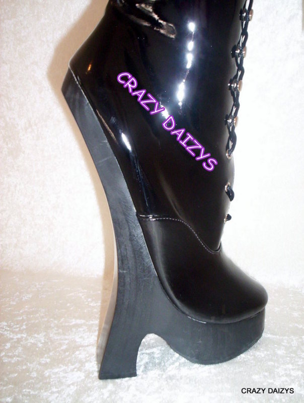 I thought about this design too (attached some photos, should the ebay links do not work anymore). You can't break the heels, since there are no heels (there's still risk of twisting ankles 😕 ) But you can't use heels as anchor points for bondage.