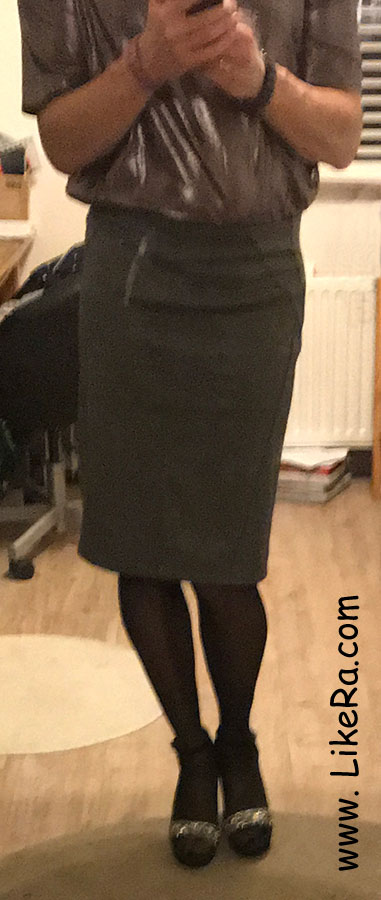 Had to throw a garbage bag into the container 50m away from the house. 3AM, nobody is around, but lots of street lights, and a couple of cameras from our neighbours, very quiet, only the click-clacks of my 11cm heels. Tight pencil skirt and a bit too high heels (but I always keep my legs straight and knees together 😉 ) do not allow fast walking.