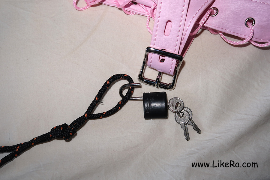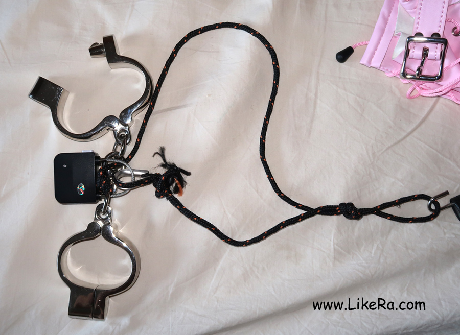 Then I locked the handcuff string to the blindfolds AND THREW THE KEY FORWARD!!!! (I DON'T KNOW WHY!!! ) Then very accurately, attentively and precisely (so they did not just inadvertently closed shut) locked the handcuffs on my wrists behind my back. DONE!