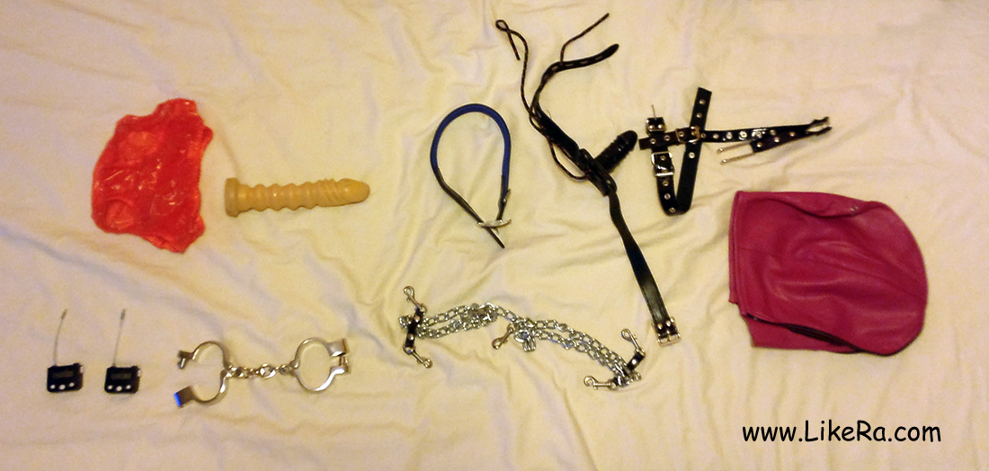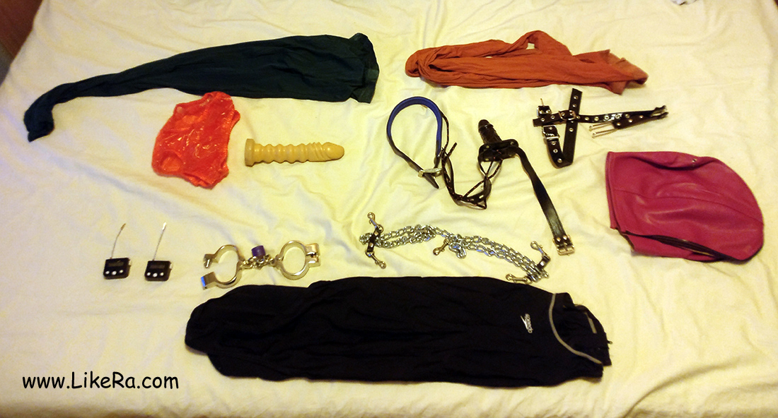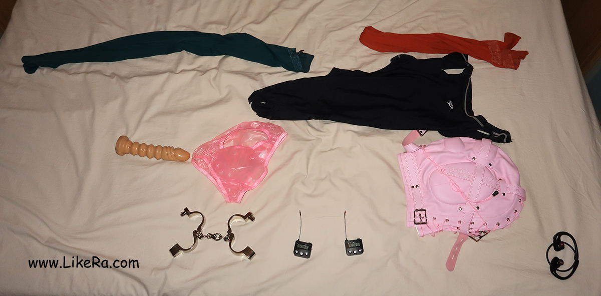 One time-lock was set up for 2h20min, the other one to 3h10min. The key to the handcuffs was placed in the washing machine. This is the rest of the clothing: