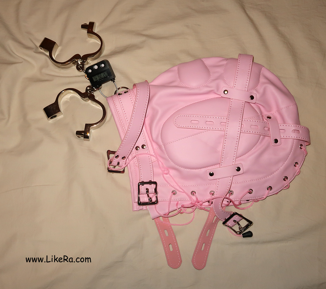 The main trick is the combination of the deep-throat gag and the nose hook. Usually, to avoid the gag you can lower your head, but the nose hook prevented that. So, you can choose either deep-throating or pulling your nostrils upwards. The hood prevented the straps from sliding off.