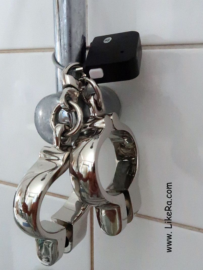 - The handcuffs (were hanging on the waist chain, so I could not pull my hands far from the small of my back ) are locked.