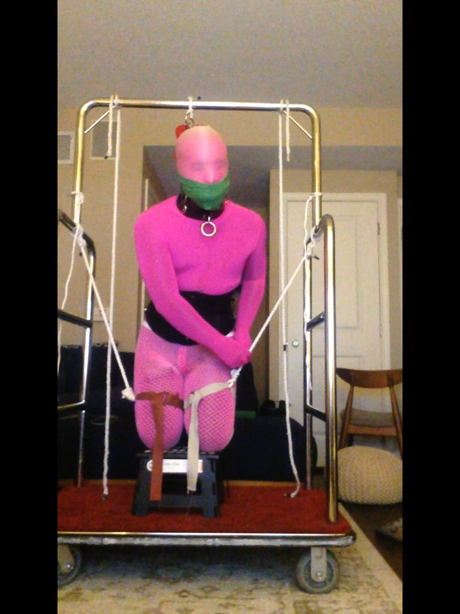 Hello everyone, it has been a while since I posted a session. Would love to hear any feedback on this one. For safety I did not fully lock myself into this one, all I needed to do was unbuckle the cuffs. I also implemented my method of removing a support stool for suspension sessions. You basically use a pair of tights tide to a secure structure and when you remove your weight gone is the stool. You can't see them but I am wearing my lovely ballet boots and have four stockings in my mouth as a gag.