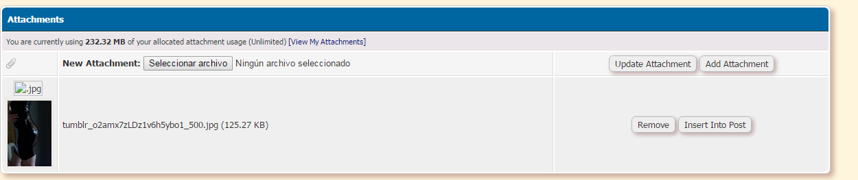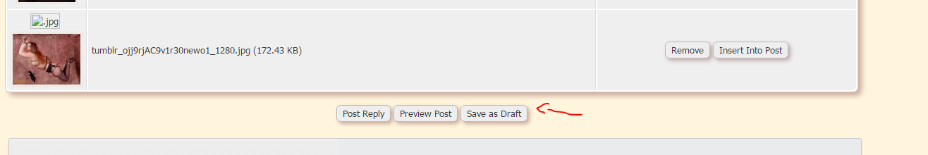 And this one I don't know if it's possible but it would be great too... When I upload a lot of pictures, the buttons goes to the bottom of the attachments, so I have to scroll a lot, maybe if it's possible to move above the attachments it would be more easy to preview and post if you have a lot of them.