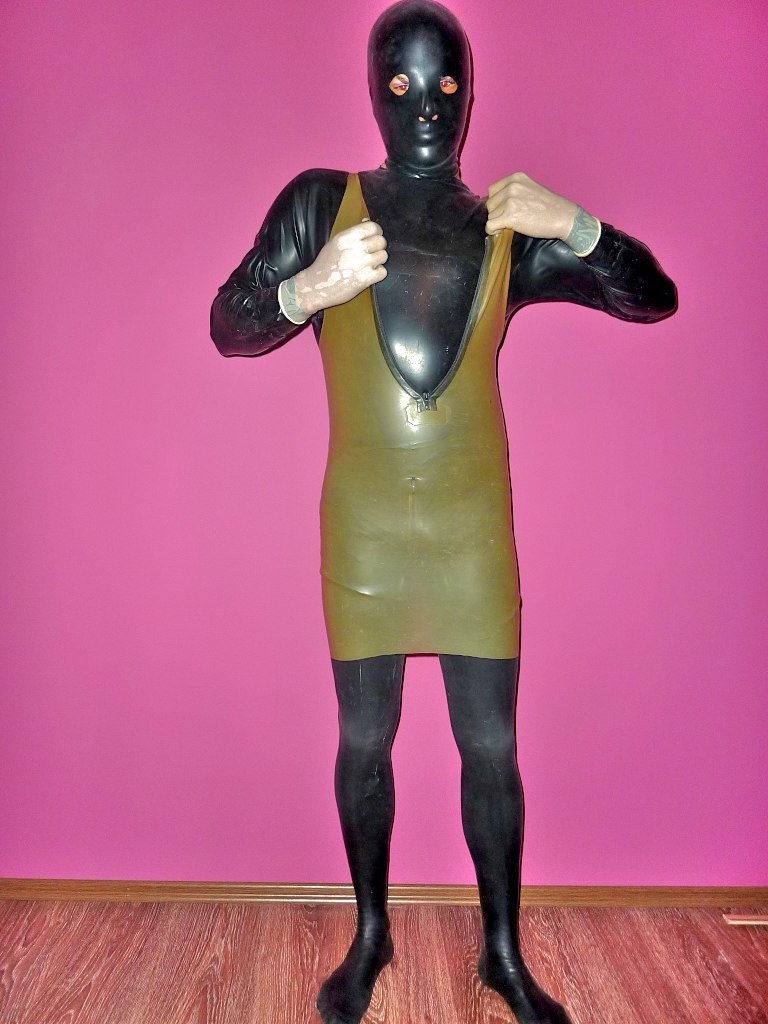 And transparent latex stockings with black back seams.