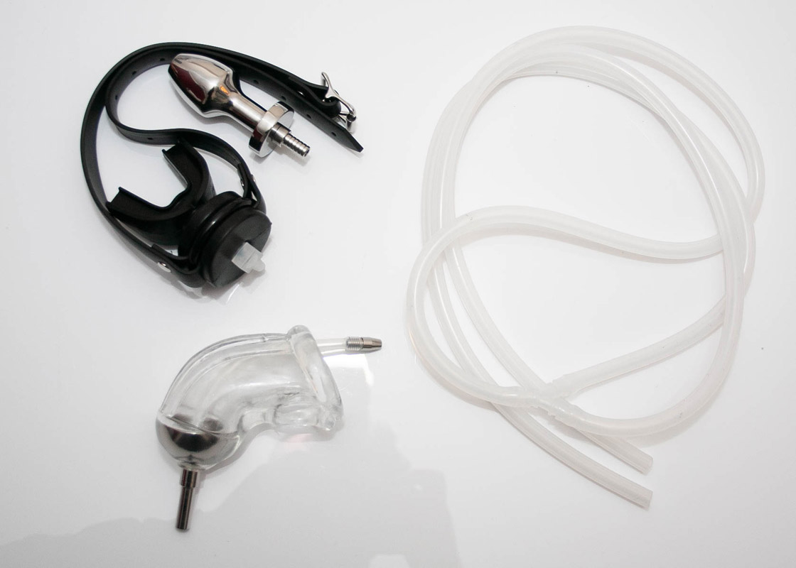 It was an inflatable gag with a breathing tube, which I used as a piss-tube. This inflatable gag was built into an inflatable latex hood.