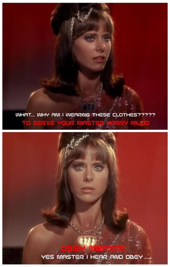 The crew of the Enterprise is hijacked and brought to a planet populated by 1,000s of female androids, all with shiny stockinged legs. This brought back wonderful memories from my childhood...