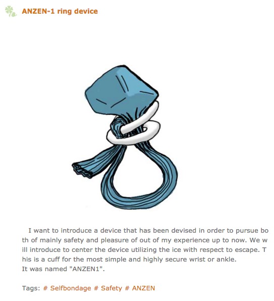 Here is another variation, where the ice ring is eliminated and instead the double ring itself is used to stop the ice.  It was posted on a Japanese self-bondage blog.