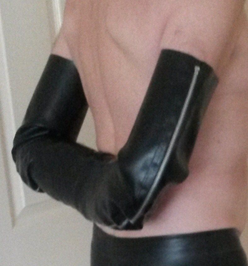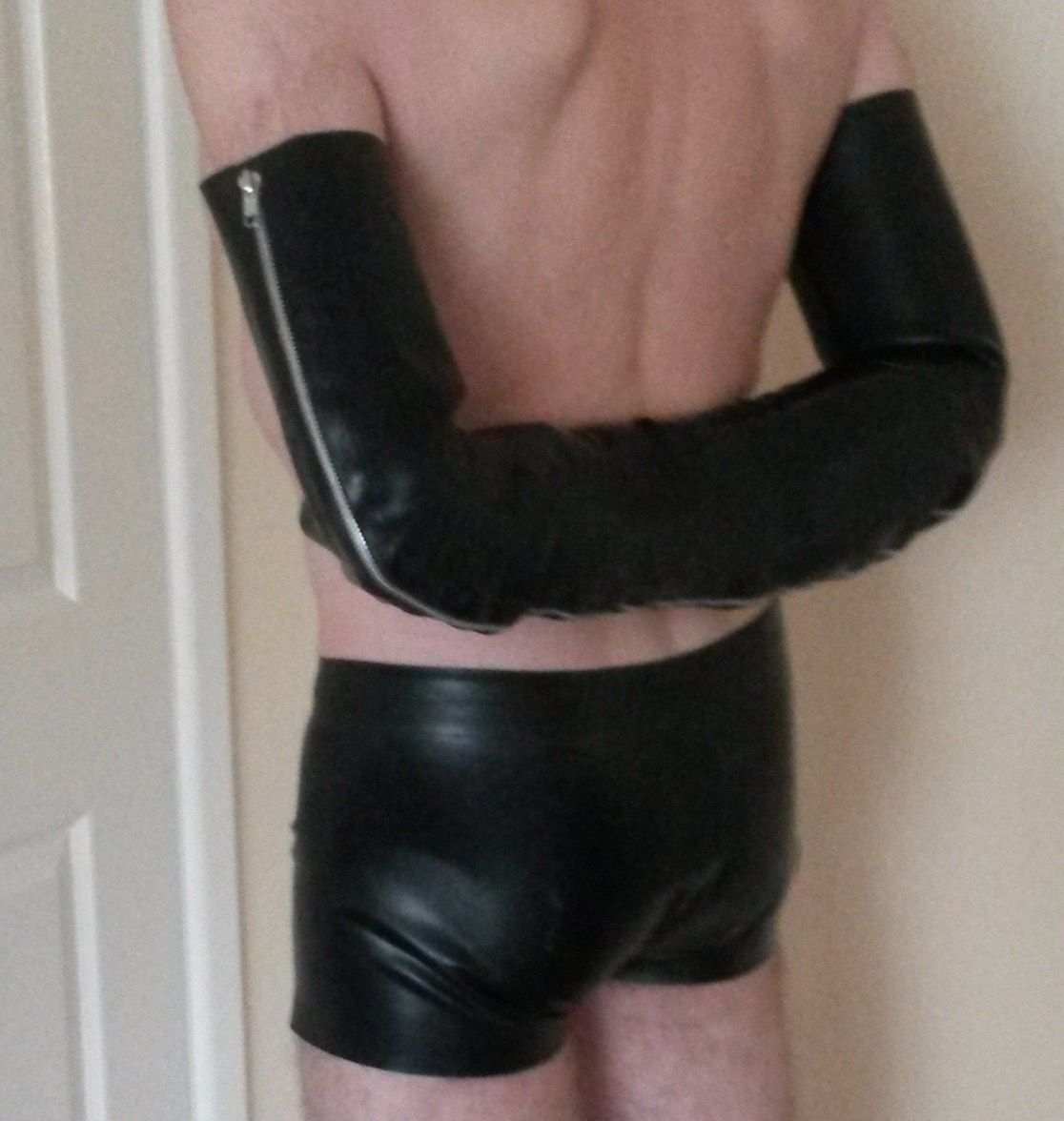 I think this should hold your arms in place and prevent stripping of armbinder. Additional the Armbinder can can be fixed to a collar, to hold it up.