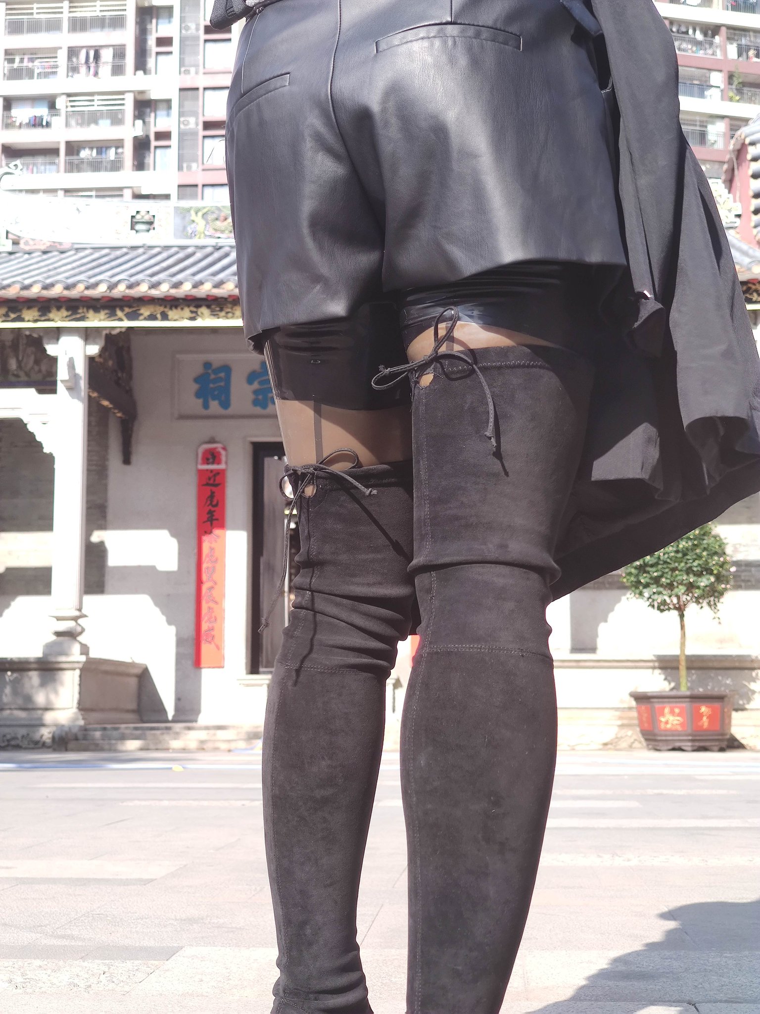 How to wear transparent back-seamed latex stockings with latex shorts in public: