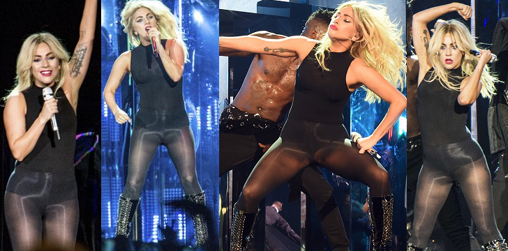 Gaga at Coachella wearing shiny pantyhose over bodysuit. Yes this woman is a pantyhose/tights goddess.