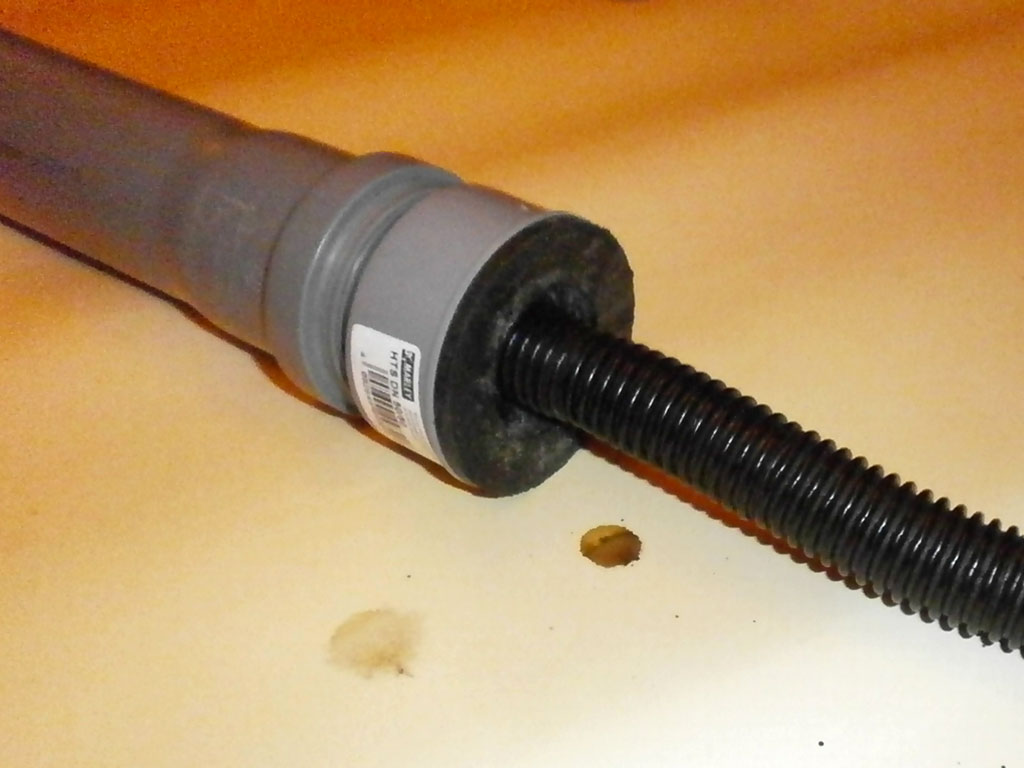 There is an end-piece on the hose, which fits almost exactly into the rubber seal. I pushed it completely through the seal, and this is air-tight.