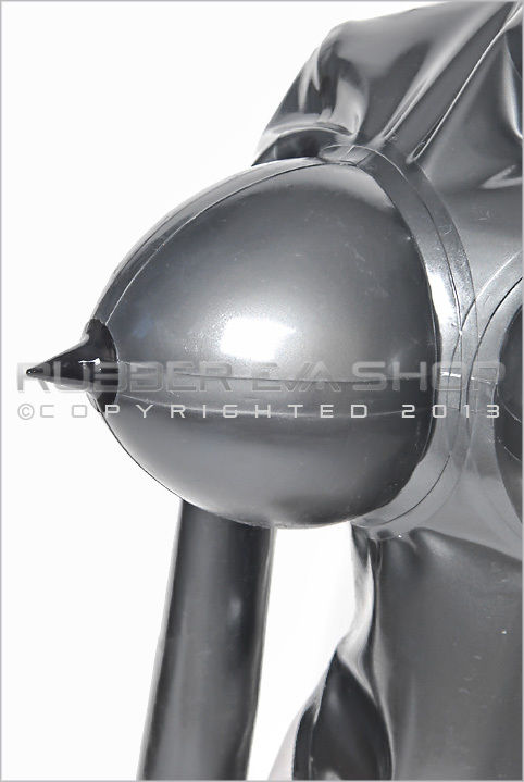 Demask pearl-sheen latex leotard with inflatable torpedo tits:
