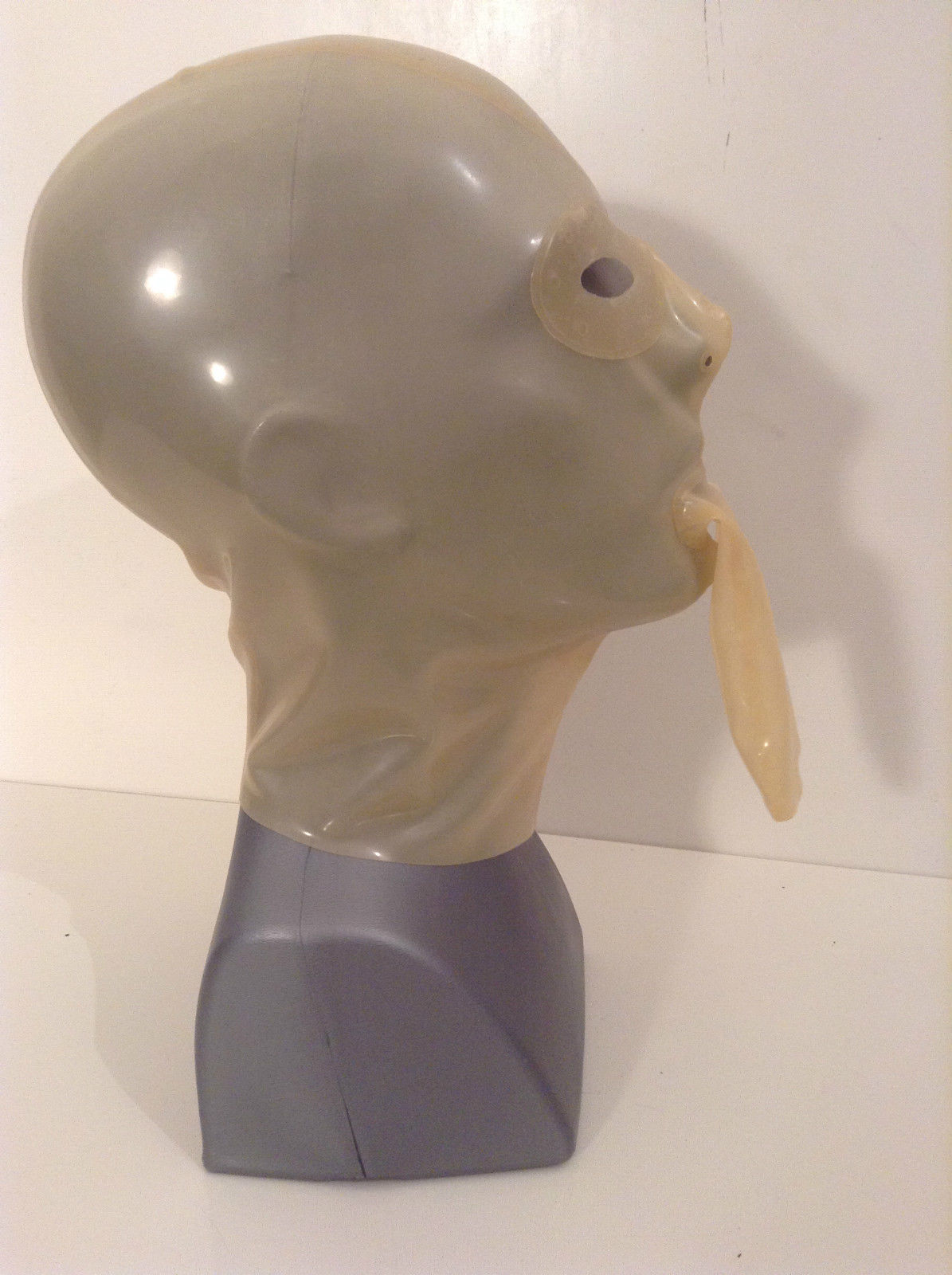 Transparent latex mask with built-in condom At least my favourite deep-throat dildos should feel comfortable in such a condom 😋 Not sure about the lens, I would like to have no eye openings or see-through plastic. |