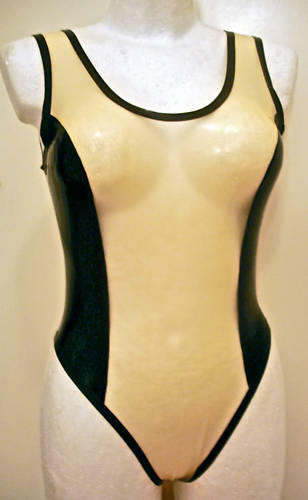Latex swimsuit leotard with suspenders. Nice combination, you will wear at least latex stockings anyway 😉