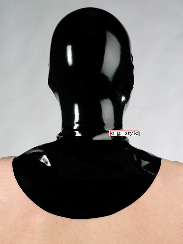 Another item to help to to get 100% skin coverage: a completely closed latex mask with extended neck. Put you favourite latex catsuit and no matter how flexible your neck is, no skin will be visible.