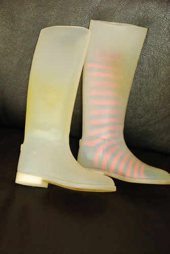 Did not see such things before: transparent latex boots. Yes, I saw transparent wellies, but not in this specific colour. Should match latex attire:
