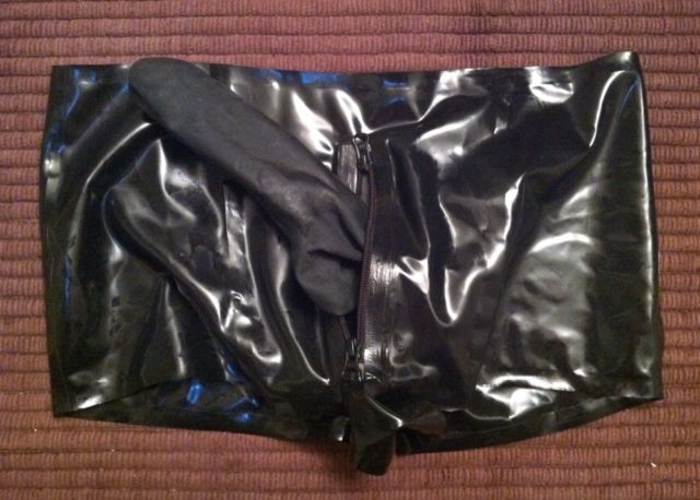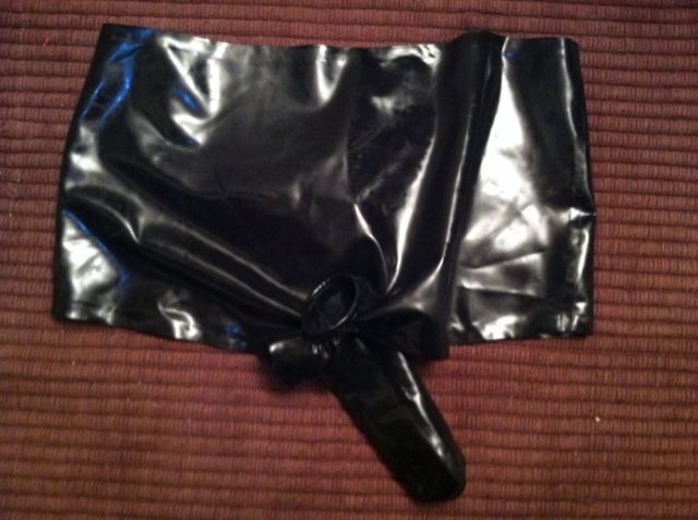 Latex shorts or briefs with various anal or penis condoms or rings (since I was asked many times about them):