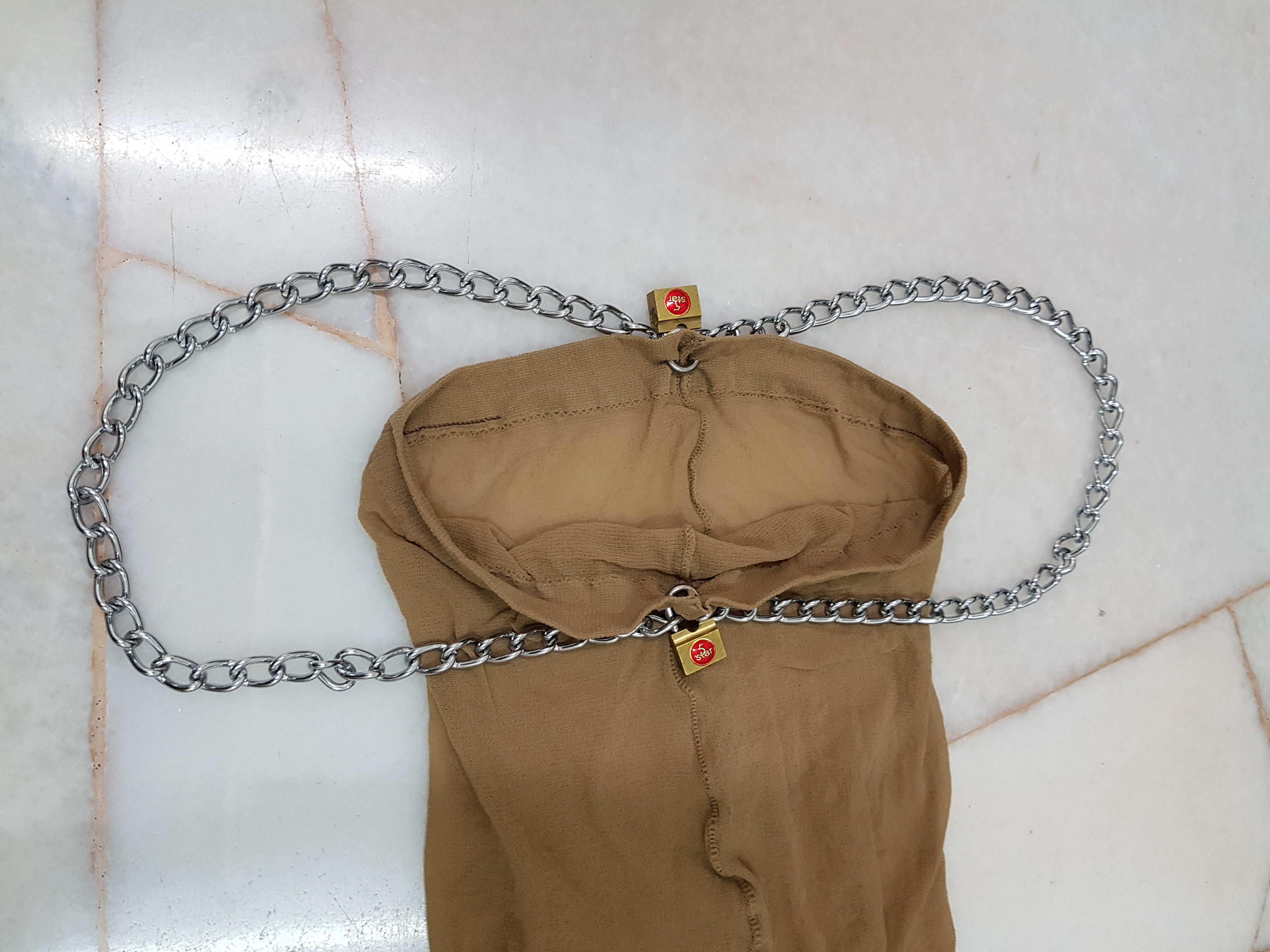 I am wearing double padlock. One at the back of the pantyhose another it the front lockìng padlock with secure at the pantyhose waist band. The back padlock loop to the chain and pantyhose waist band prevent me from back side shit functions. The front padlock attach to the pantyhose waist band prevents the whole waist chain from removal from the waist. Urinating still possible by sliding to the side opening of the pantyhose waist chain to allow my dick to stick out to pee functions. BTW I am wearing HnM Matted Run Proof Pantyhose.