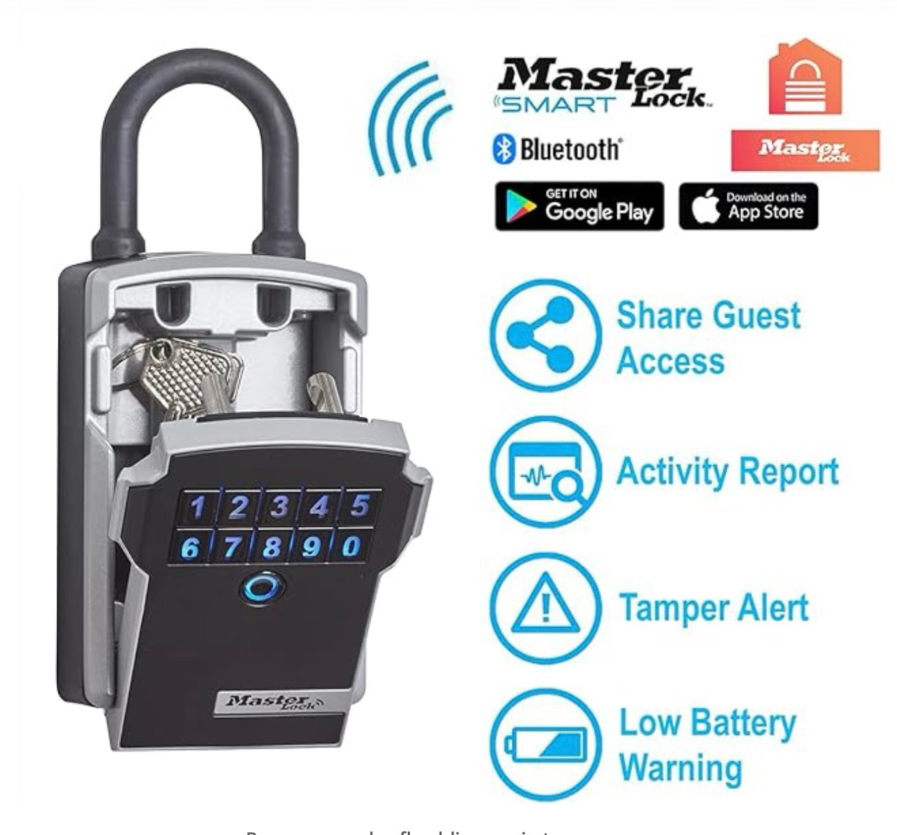I have been using the Masterlock 5440 or 5441 for more than 7 years, which can be opened and closed remotely by my Master with the Masterlock app, temporary access for cleaning, etc.