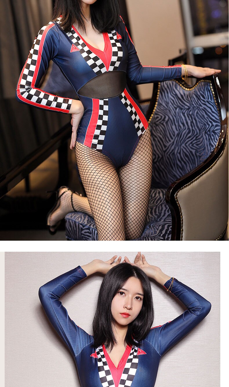 Actually it's not about the race leotard, but more about the layers of pantyhose worn underneath. The fishnets her are worn correctly with shiny pantyhose!