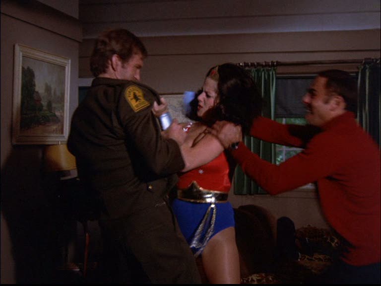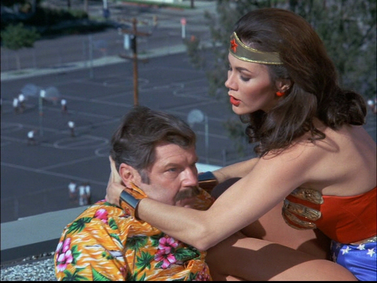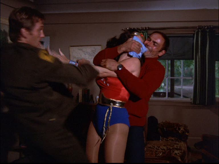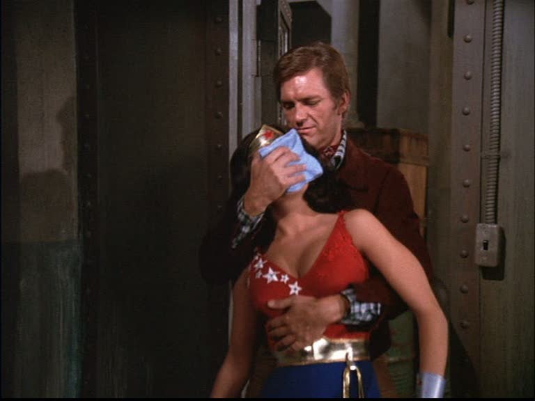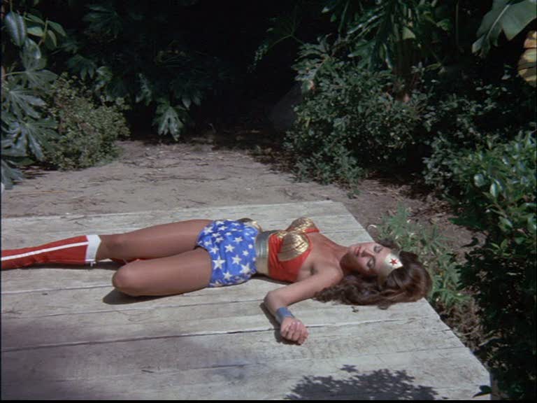 An icon from my youth, Lynda Carter always wore lovely shiny tights. Even in the first CBS series set in WWII with the 'Briget Jones' knicks she wore what look very much like 'toast' Danskins (except they have a squarish gusset if you look closely). Maybe Danskins were like that back in the seventies when the series was shot...