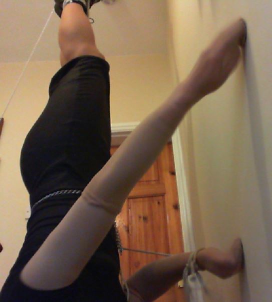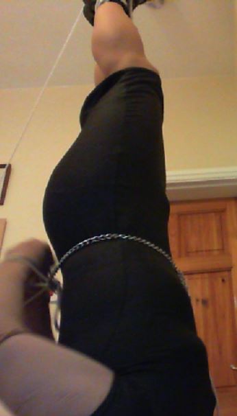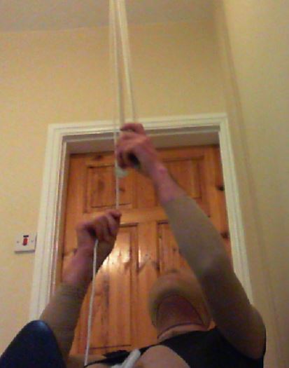 The effort of hauling myself up into the air was very hard work – I need to find a simple solution that I can use to reduce the effort involved (my arms ached for days afterwards). I think that a heavy duty ratchet (not the one I currently use for self-bondage) might work, but I need to be able to safely lower myself when finished. I’d love to trust an electronic winch to take all the effort out, but I don’t!